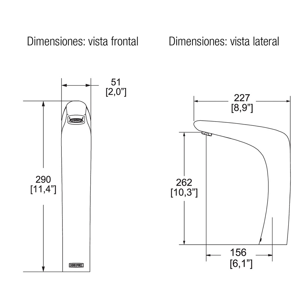 TV‑302‑C (Liquida) se instala en pared, con sensor electrónico y alimentación directa. Su diseño premium es adecuado para baños modernos de alto tráfico.