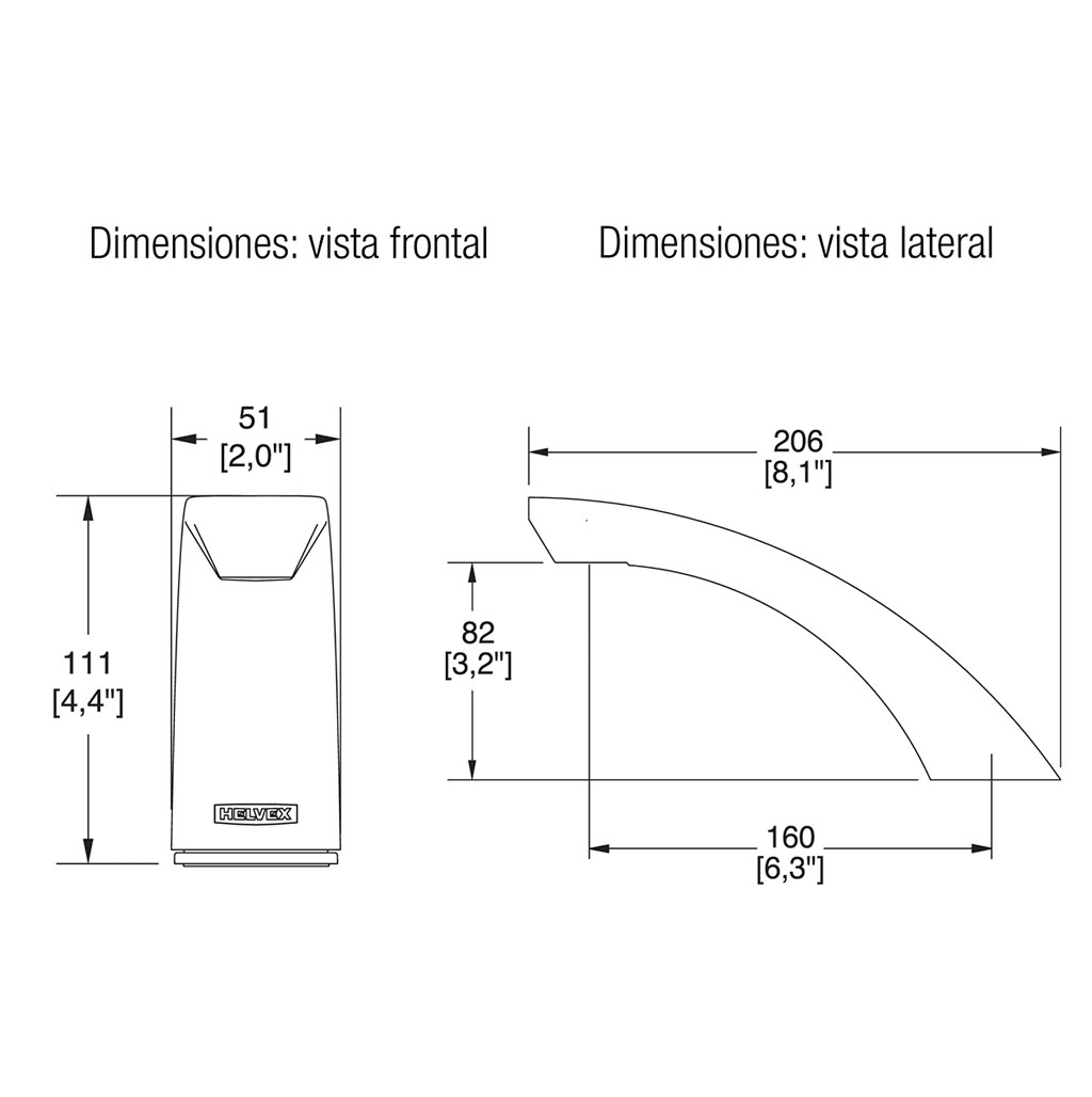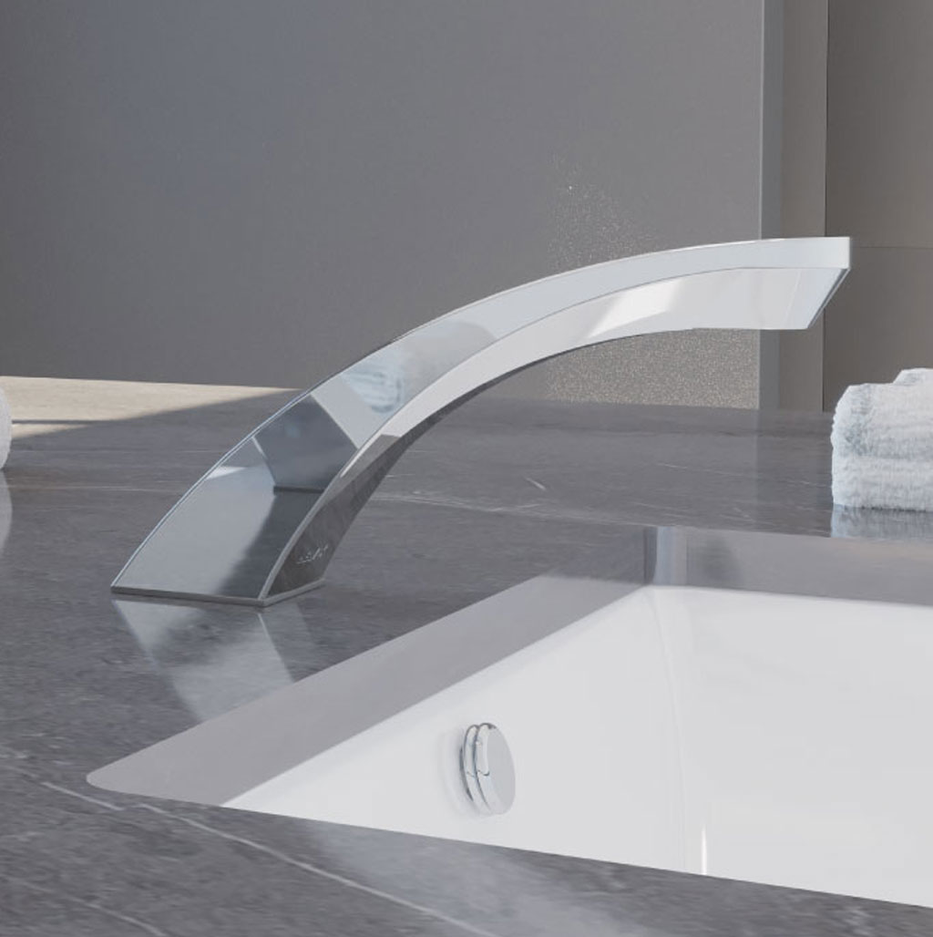 Grifo electrónico con sensor de proximidad, baterías, caudal de 1.9 L/min, acabado cromado.