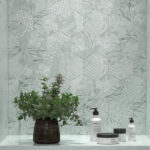 Con su estética gris off-white y tacto satinado, esta pieza transmite una sensación suave y orgánica. El patrón evoca vegetación tropical, aportando frescura y profundidad visual.