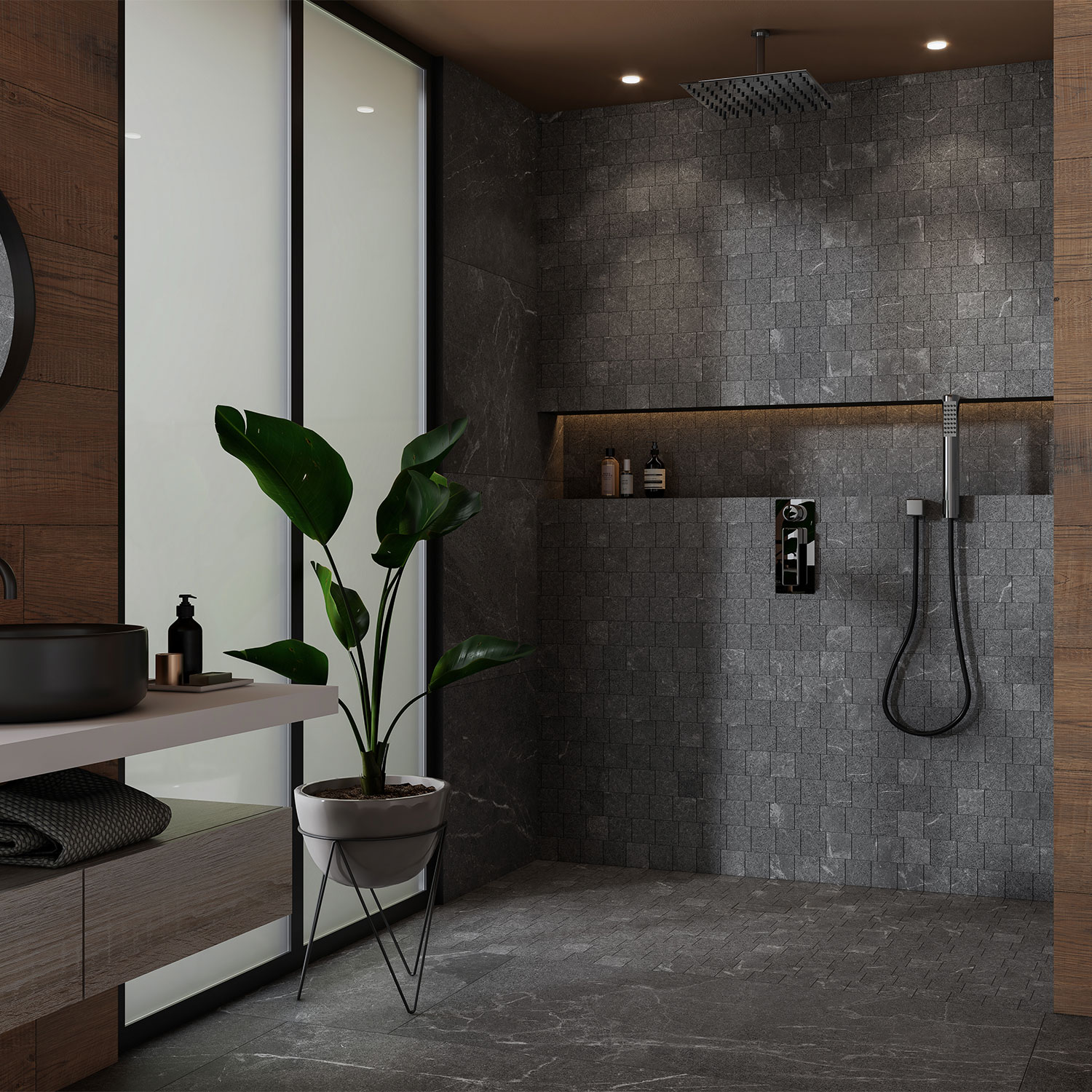 La malla porcelánica Índigo 30×30 cm se distingue por su apariencia piedra de tonos profundos y carácter contemporáneo. Su diseño aporta contraste y personalidad, convirtiéndola en una excelente opción para proyectos modernos que buscan un impacto visual definido.