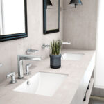 Grifo de latón cromado con cartucho cerámico, compatibilidad para lavabos instalados entre 8″ y 12″. Incluye desagüe “push” y pieza insertable para fregaderos sin rebosadero. Requiere presión mínima de 0.25 kg/cm².
