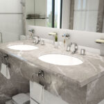 Mezcladora de lavabo monomando de 8″, con desagüe push e inserto para lavabo sin rebosadero.