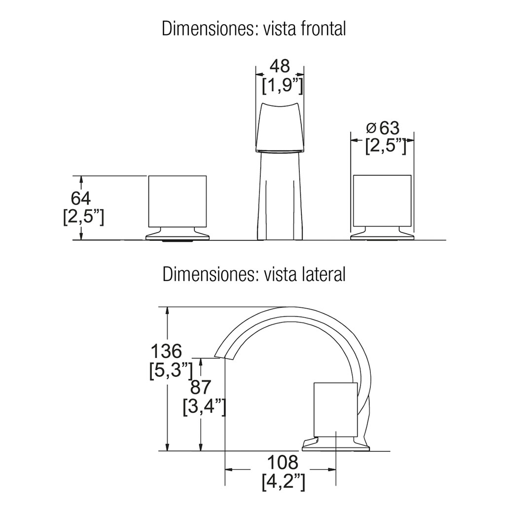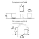 Monomando de lavabo para instalación de 8″ a 12″, incluye desagüe tipo push y adaptador para lavabos sin rebosadero. Cuenta con cuerpo de latón, manerales con giro de 90° y requiere presión mínima de 0.25 kg/cm².