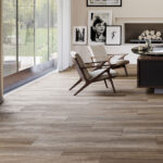 Monet Nogal es un piso cerámico de pasta roja tipo madera en formato 25 × 100 cm.