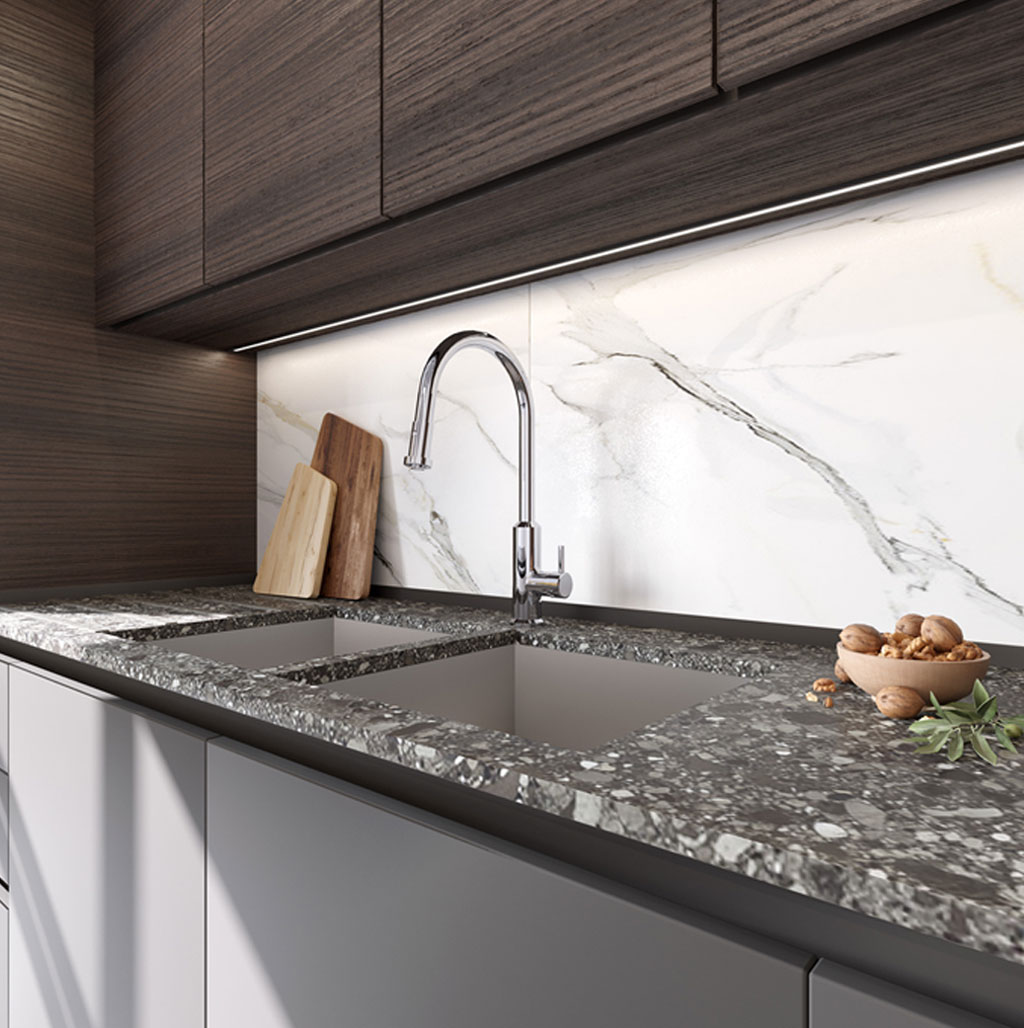 Monomando Helvex modelo Adara para cocina, combina estética elegante con desempeño eficiente, ideal para espacios actuales.