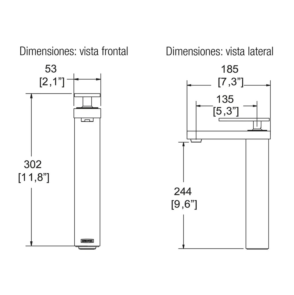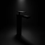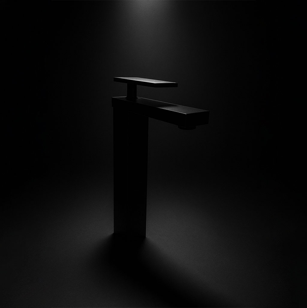 Mezcladora de lavabo alto de la línea Máxima, en acabado ébano mate. Palanca lateral con operación lisa, cartucho cerámico estándar, ideal para lavabos empotrados sin rebosadero.