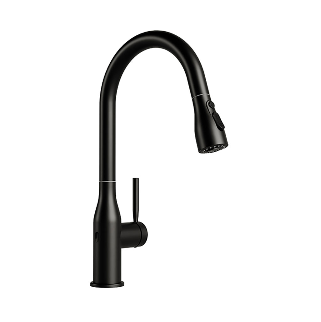 Monomando electrónico Práctika con sensor lateral y cabezal retráctil en acabado ébano.