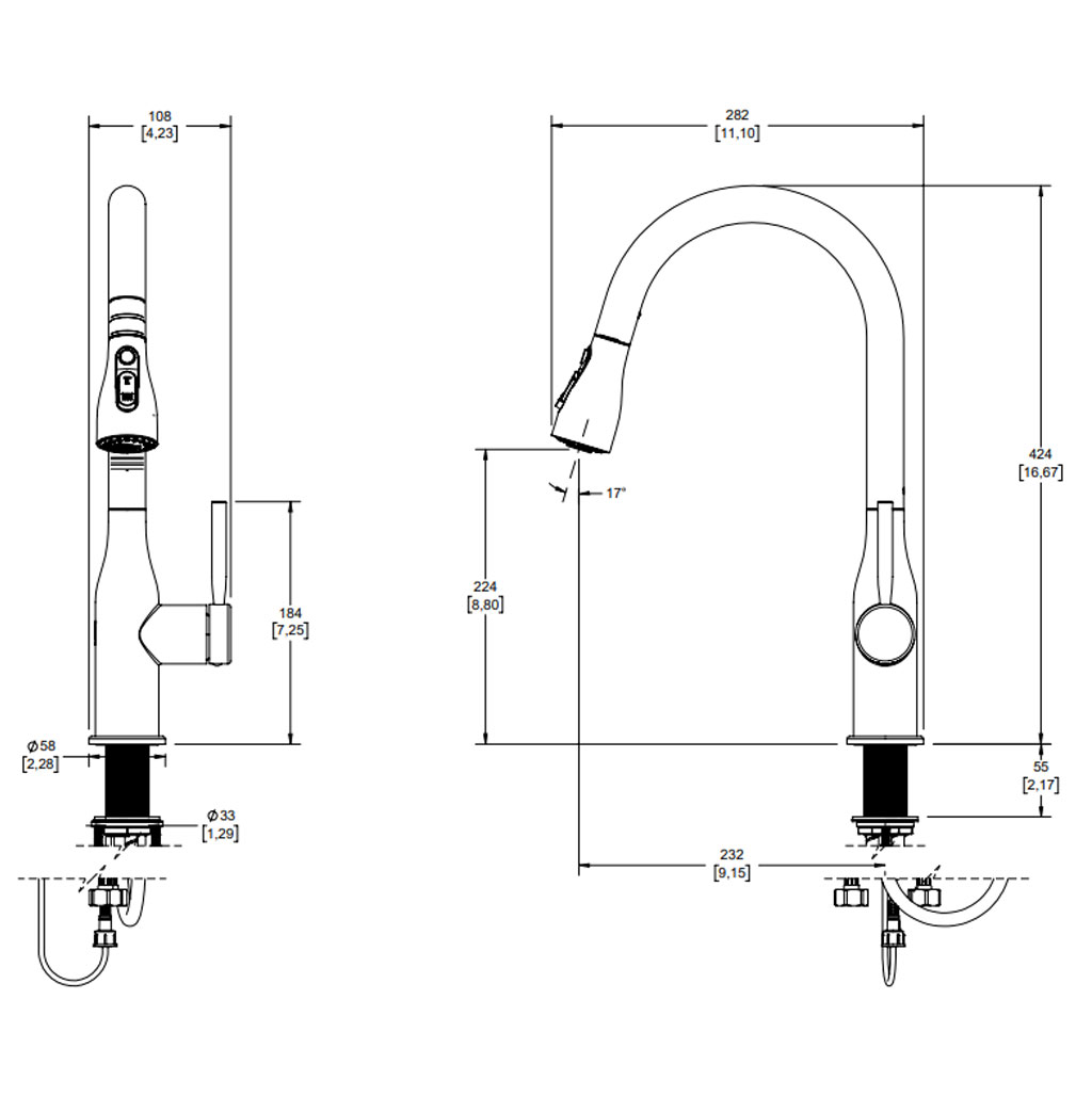 Mezcladora para fregadero con sensor infrarrojo activable sin contacto y cabezal retráctil con tres tipos de chorro (normal, lluvia y concentrado). Fabricada en acero inoxidable con cartucho cerámico de 35 mm.