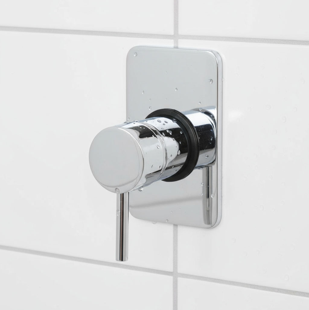 Monomando empotrado de la línea Neo, con diseño de perfil bajo, ideal para sistemas ocultos en regaderas o bañeras y acabado elegante en cromo.