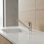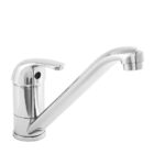 Monomando de cocina con acabado cromo, diseño moderno y aireador limpia-fácil.
