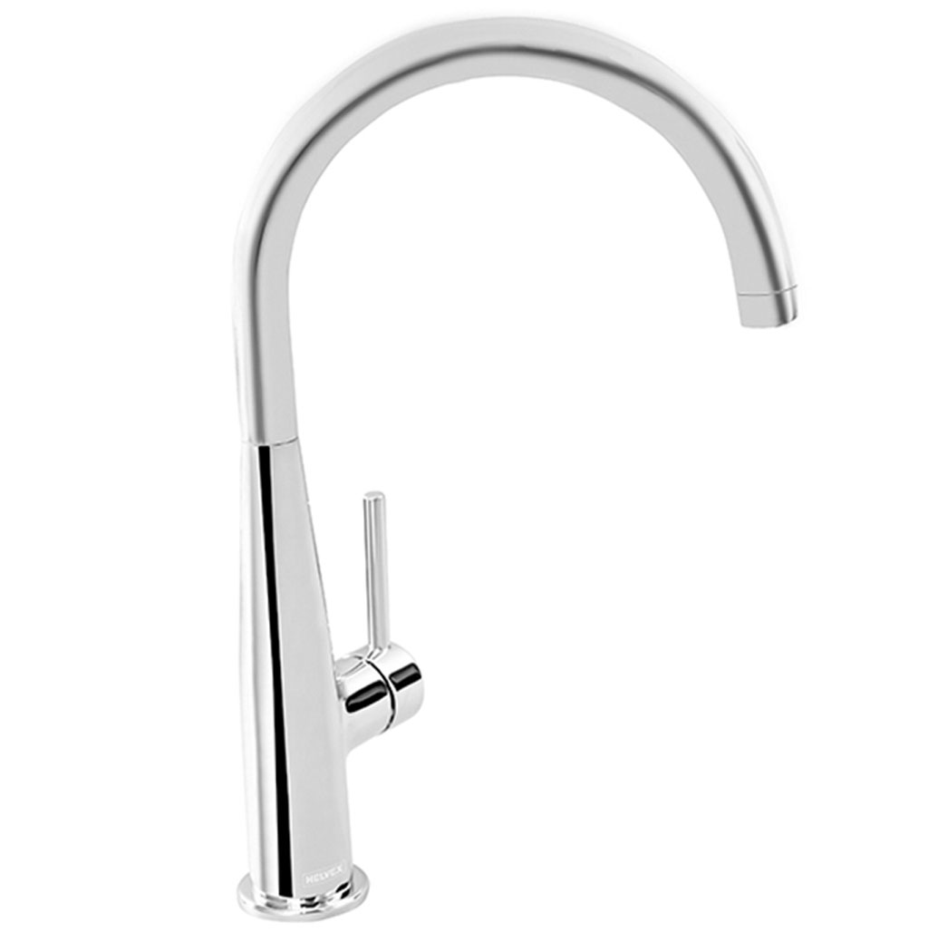 Monomando para fregadero con chorro fijo y cuello giratorio de 360°, ideal para tareas de cocina con amplio rango de movimiento.