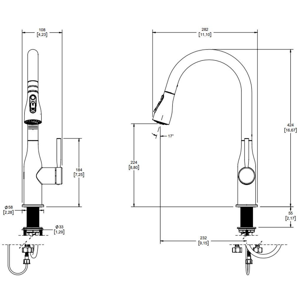 Mezcladora para cocina con cuello alto retráctil y cabezal tipo chef, compatible con dos chorros (aireado y lluvia).