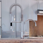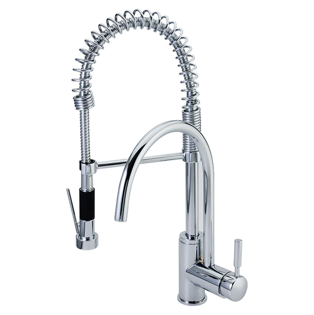 Monomando profesional con cuello giratorio de resorte y cabezal tipo chef extraíble.
