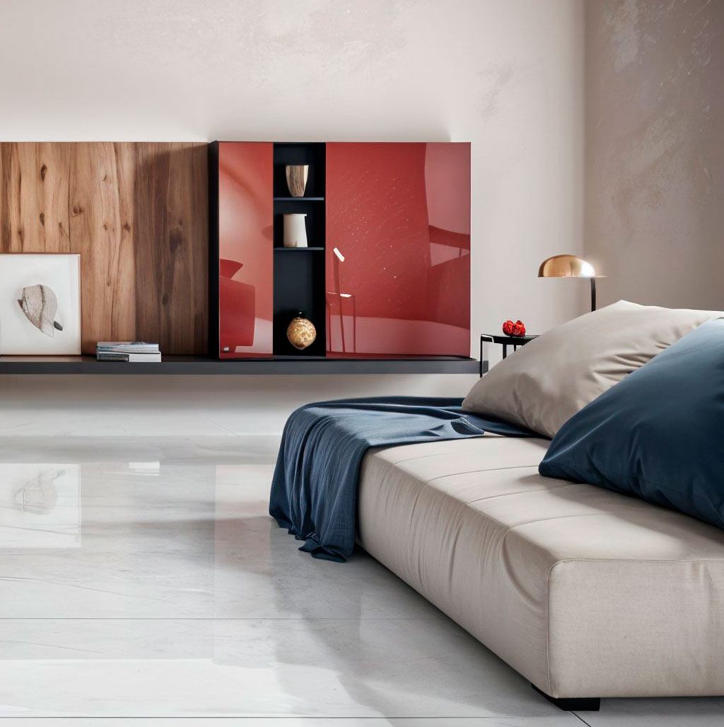 Su acabado brillante aporta luminosidad y elegancia. Perfecto para interiores como salas, cocinas, baños y muros decorativos.