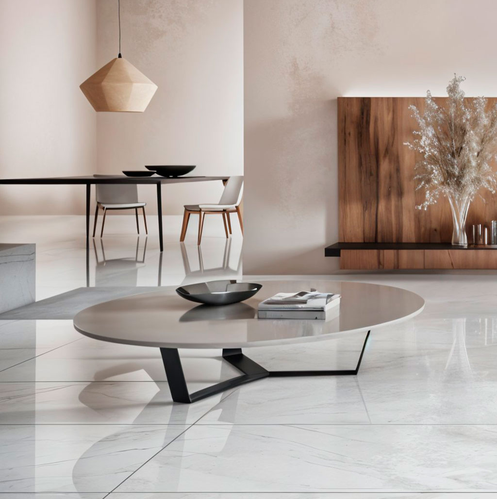Novara Beige es un piso cerámico de pasta roja tipo mármol en formato 60 x 60 cm.