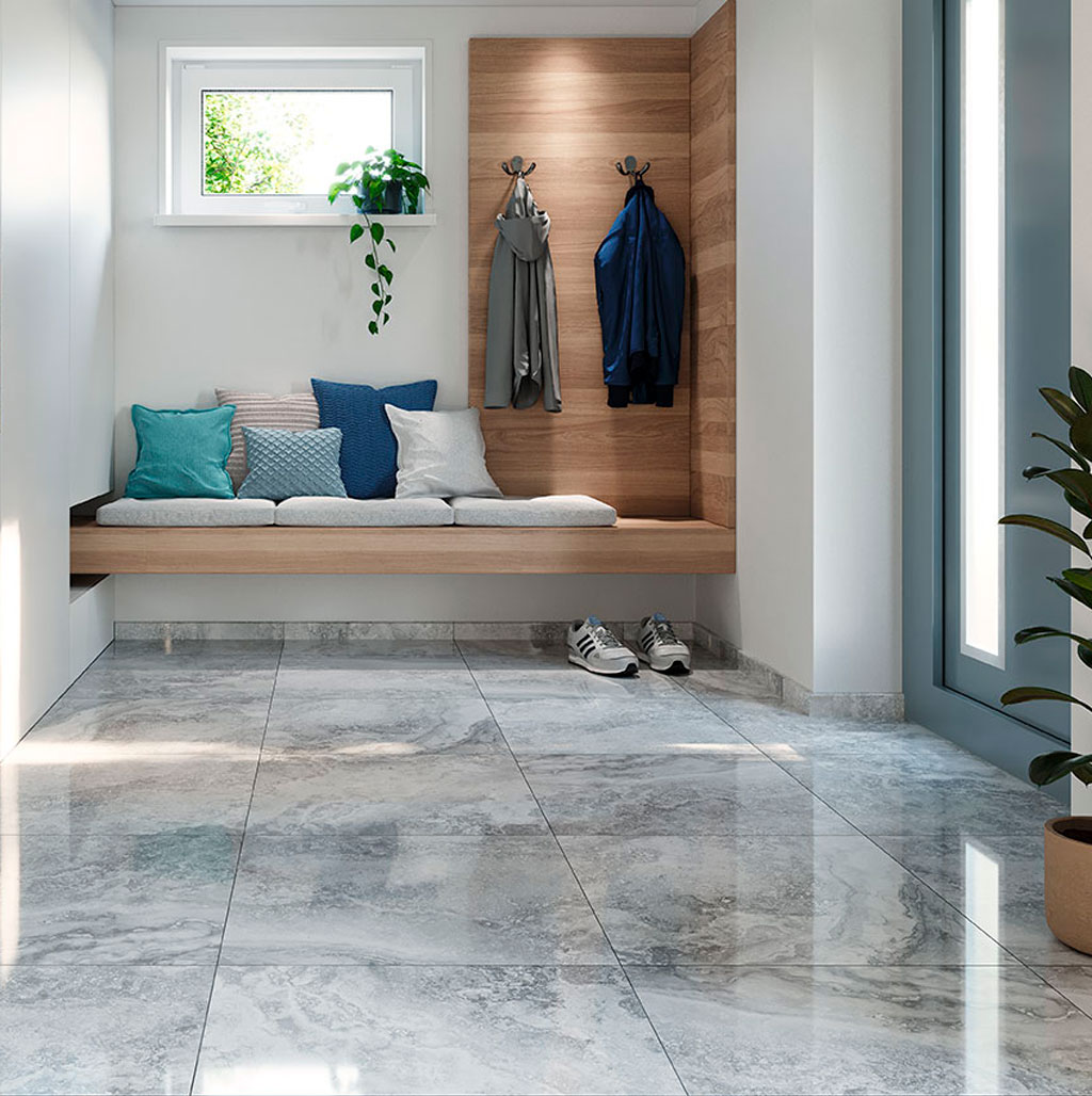 Acabado brillante que aporta luminosidad y elegancia. Ideal para interiores como salas, cocinas, baños y muros decorativos por su resistencia y fácil mantenimiento.