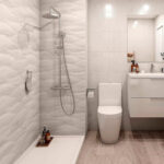 Revestimiento cerámico rectificado efecto piedra en color “Natural”, formato 33,3 × 100 cm.