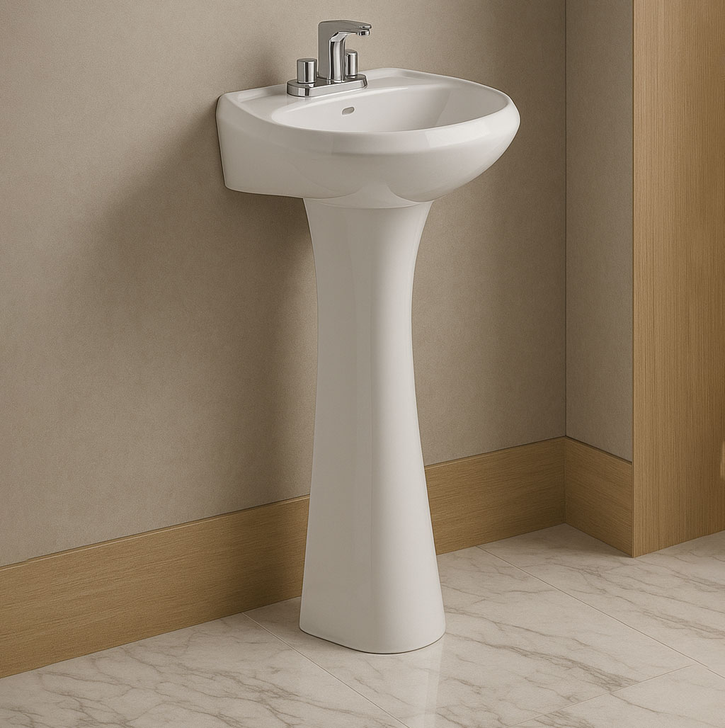 Pedestal de cerámica en color blanco, compatible con lavabos de 4″.