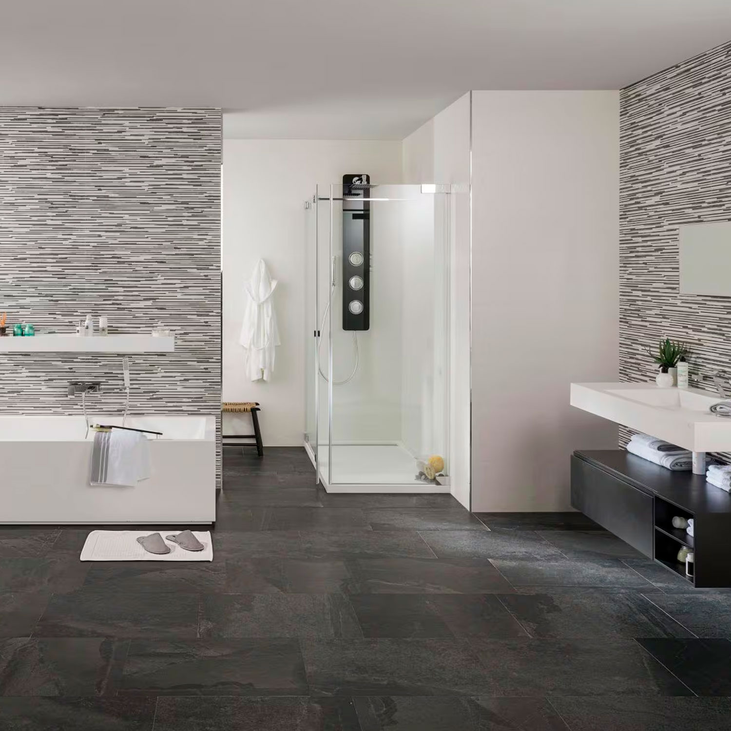 Plato de ducha extraplano en blanco Krion®.