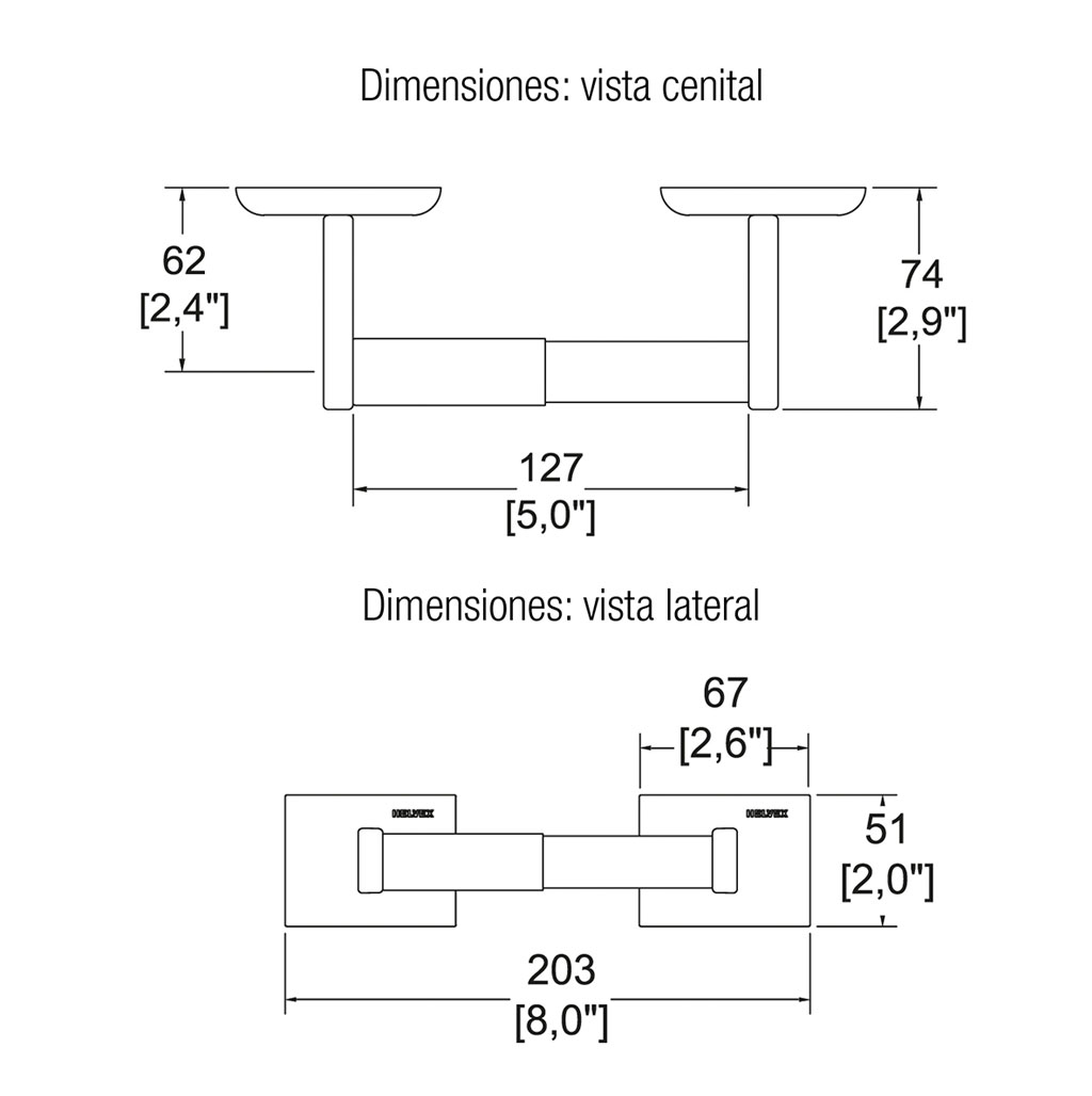 Fabricado en latón cromado, incluye tubo metálico para rollo y kit de fijación oculto.