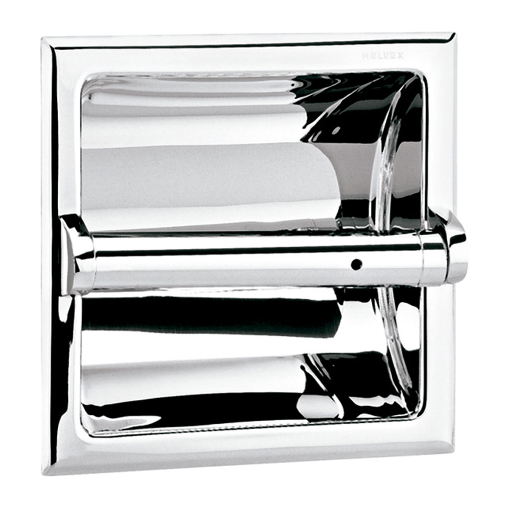 Portapapel empotrable con tubo antirrobo diseñado para proteger el rollo de papel. Fabricado en latón cromado, cuerpo robusto y sistema de instalación empotrada.