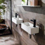 Este módulo Ras combina encimera y lavabo integrado (versión derecha) en Krion® Solid, con disposición para grifería incluida. Ideal para soluciones compactas, aporta continuidad visual y funcionalidad gracias a la superficie uniforme y diseño minimalista.