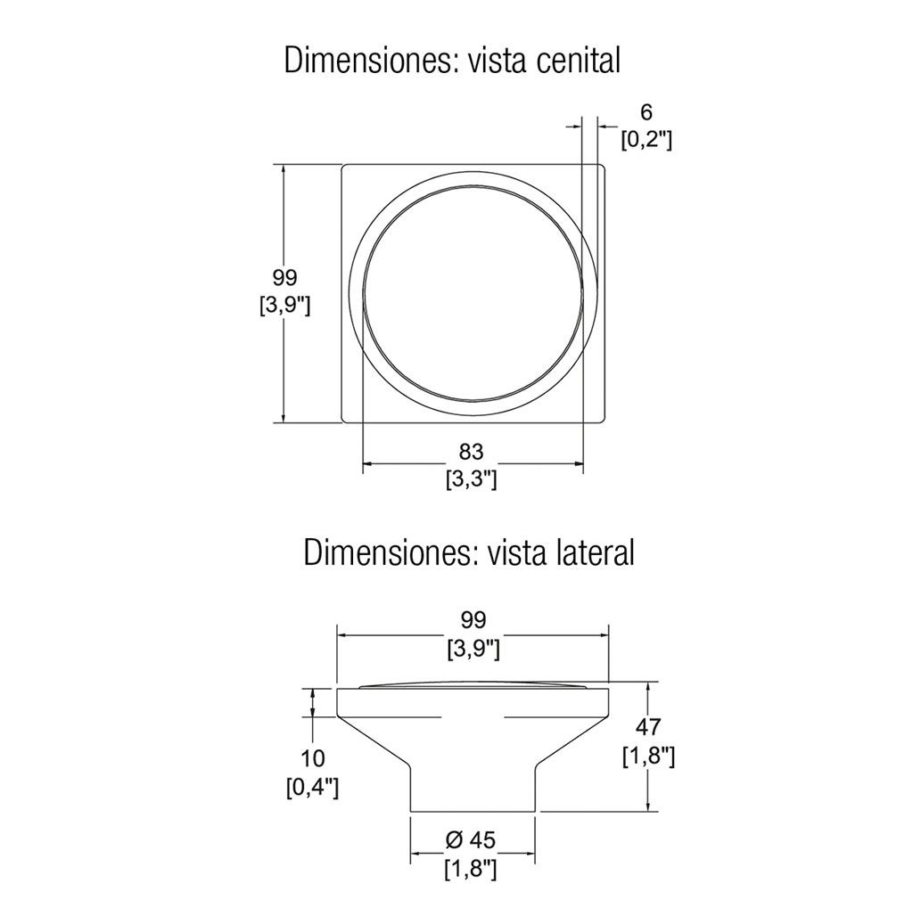 Cuerpo y cúpula en latón forjado, conexión para tubo de 51 mm y acabado cromado.