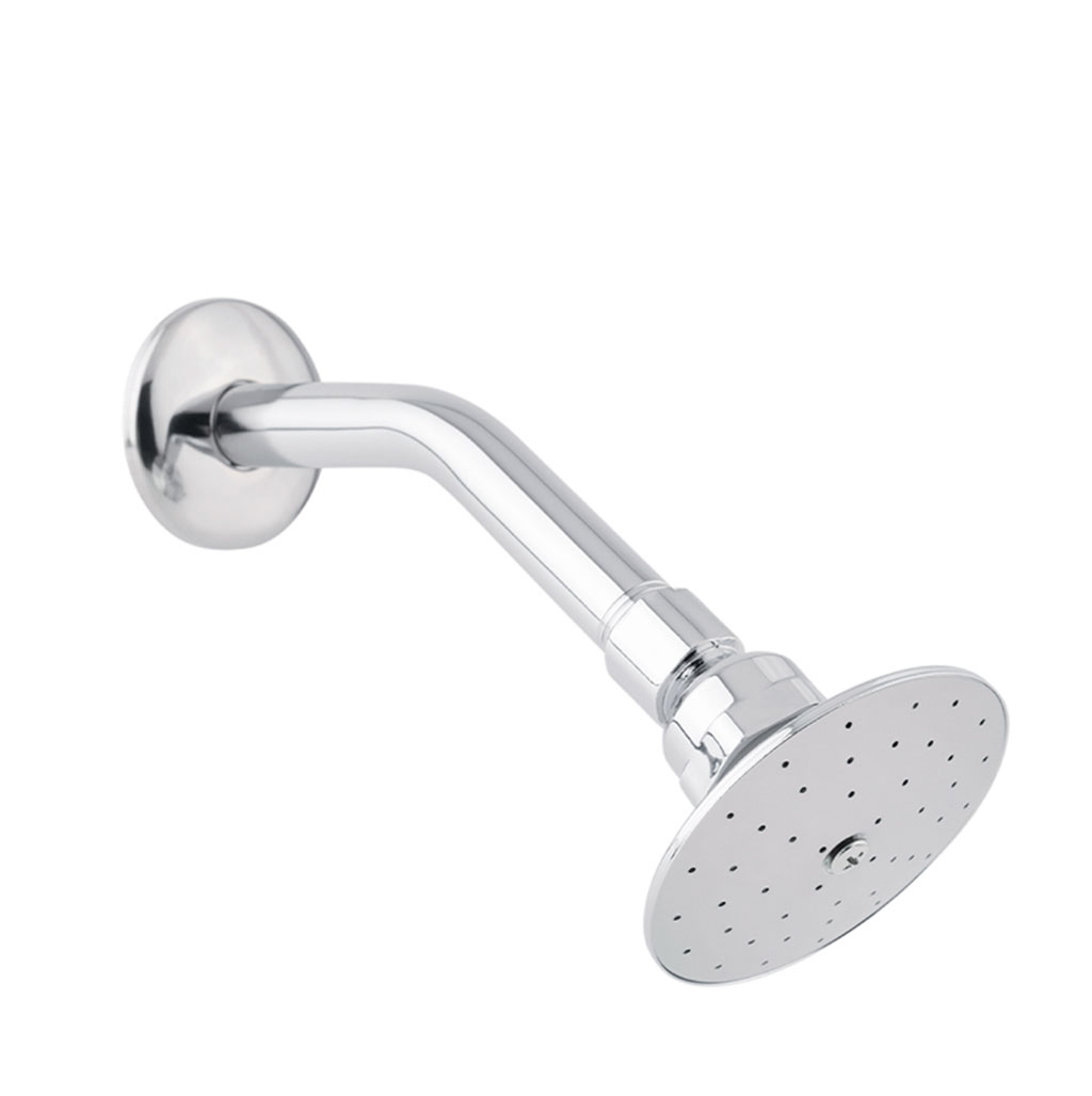 Regadera clásica con brazo, cromo brillante, ideal para reemplazo de modelos antiguos.