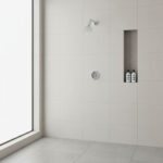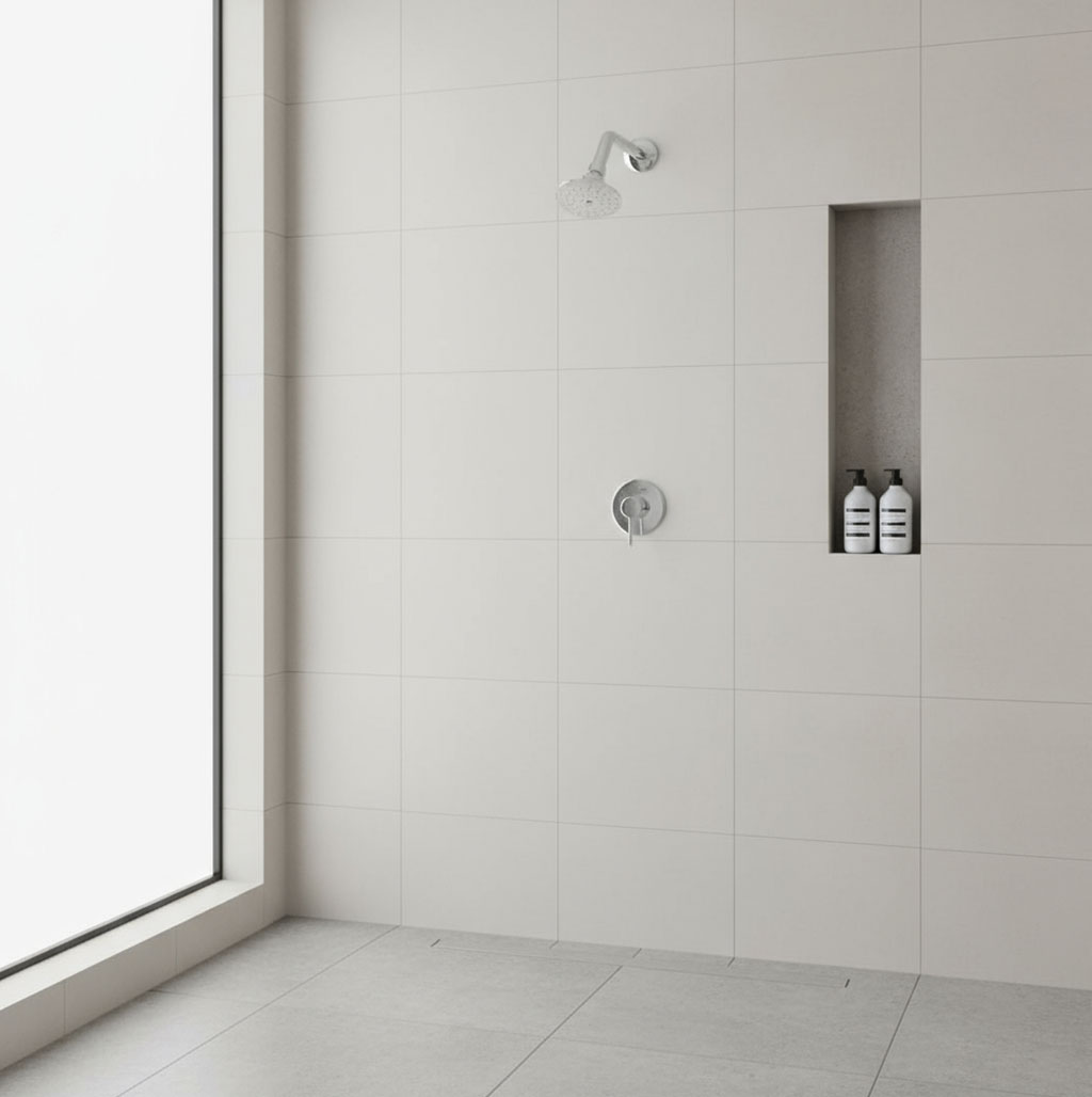 Cabezal de regadera con diseño tradicional y chapetón metálico, acabado cromado, que combina con distintos estilos de baño y asegura durabilidad.