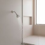 Regadera con brazo de 8.6 cm a pared, acabado cromado, que proporciona un flujo concentrado.