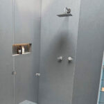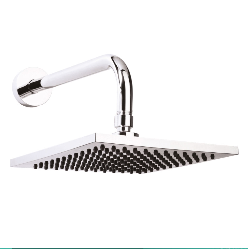 Regadera fija cuadrada de 8″ (≈ 20.3 cm) con brazo y chapetón.