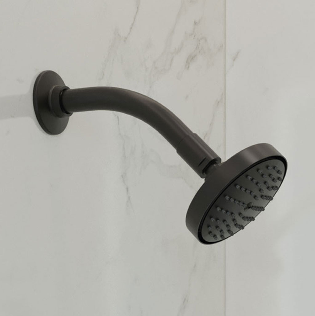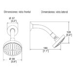 Regadera de chorro fijo “Explora” en latón, con brazo y chapetón incluidos, sistema anticalcáreo, consumo máximo de 6 L/min, apta para presiones de 0.20 a 6.0 kg/cm², acabado cromo.