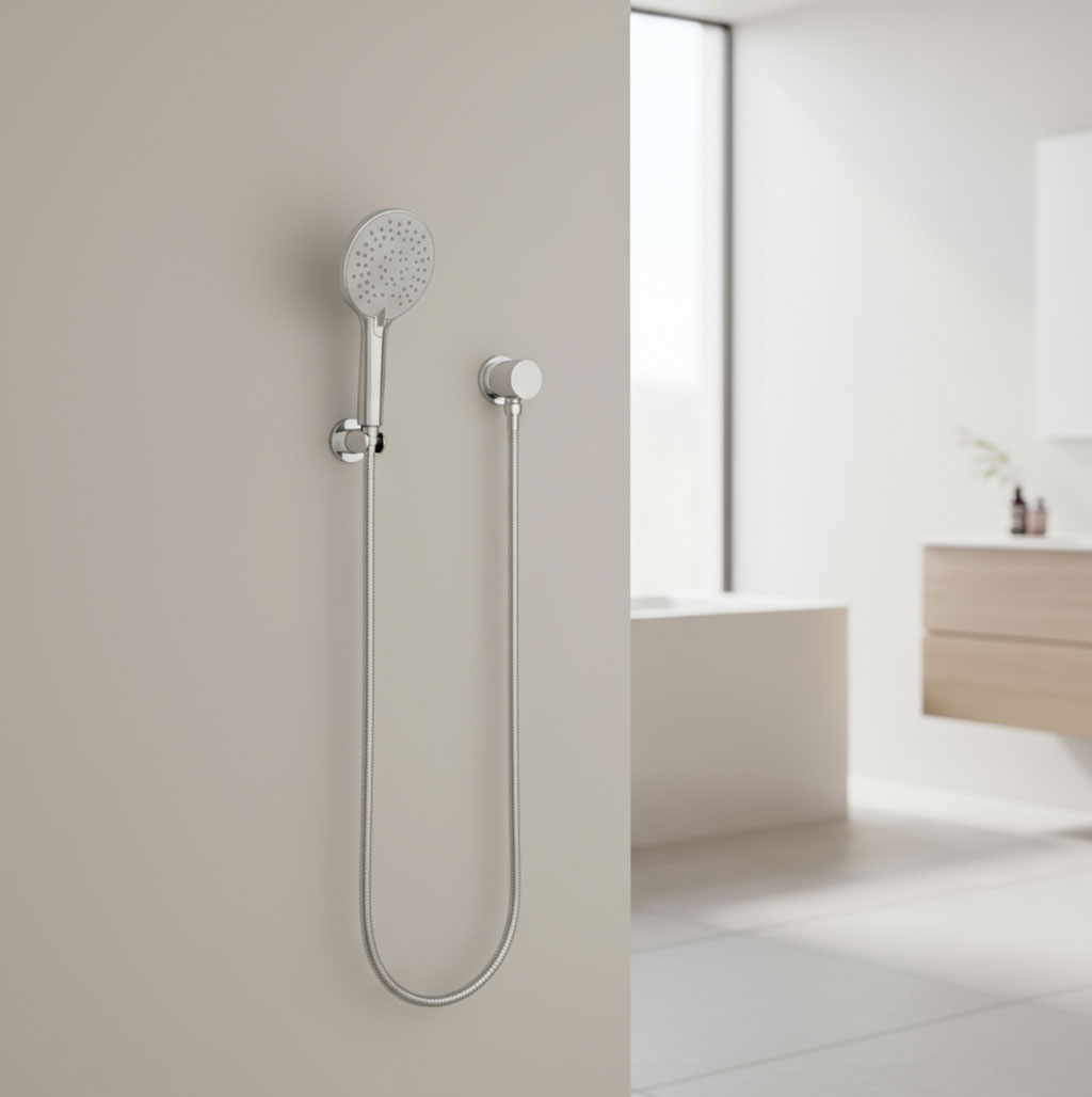 Regadera de mano (teléfono) redonda con 3 funciones de chorro, ideal para duchas flexibles y versátiles.