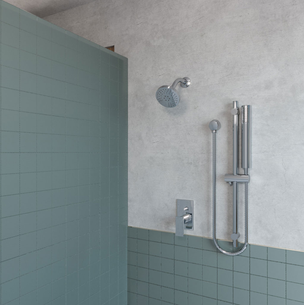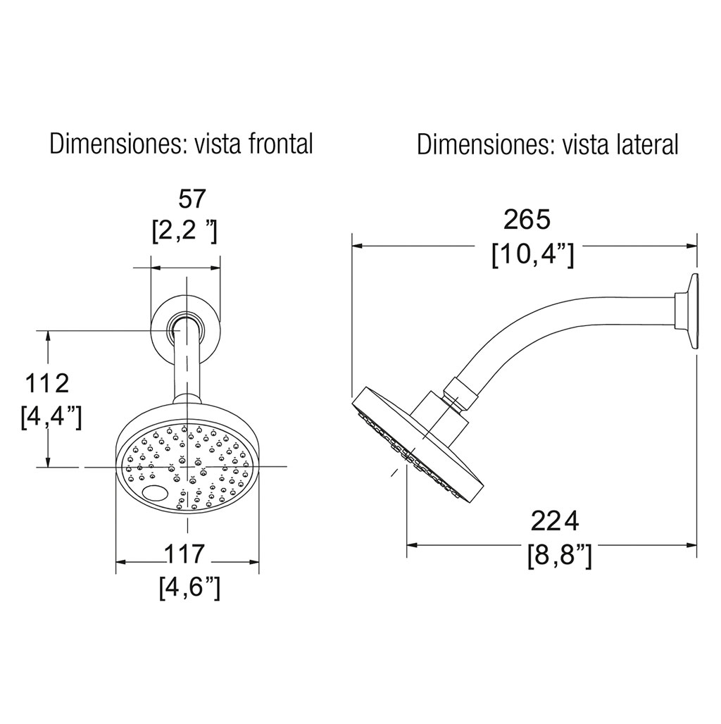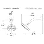Regadera multichorro redonda de 5″ (12.5 cm), incluye botón selector de 3 tipos de chorro, brazo y chapetón, sistema anticalcáreo, consumo máximo 10 L/min, presión mínima 1 kg/cm², acabado cromo.