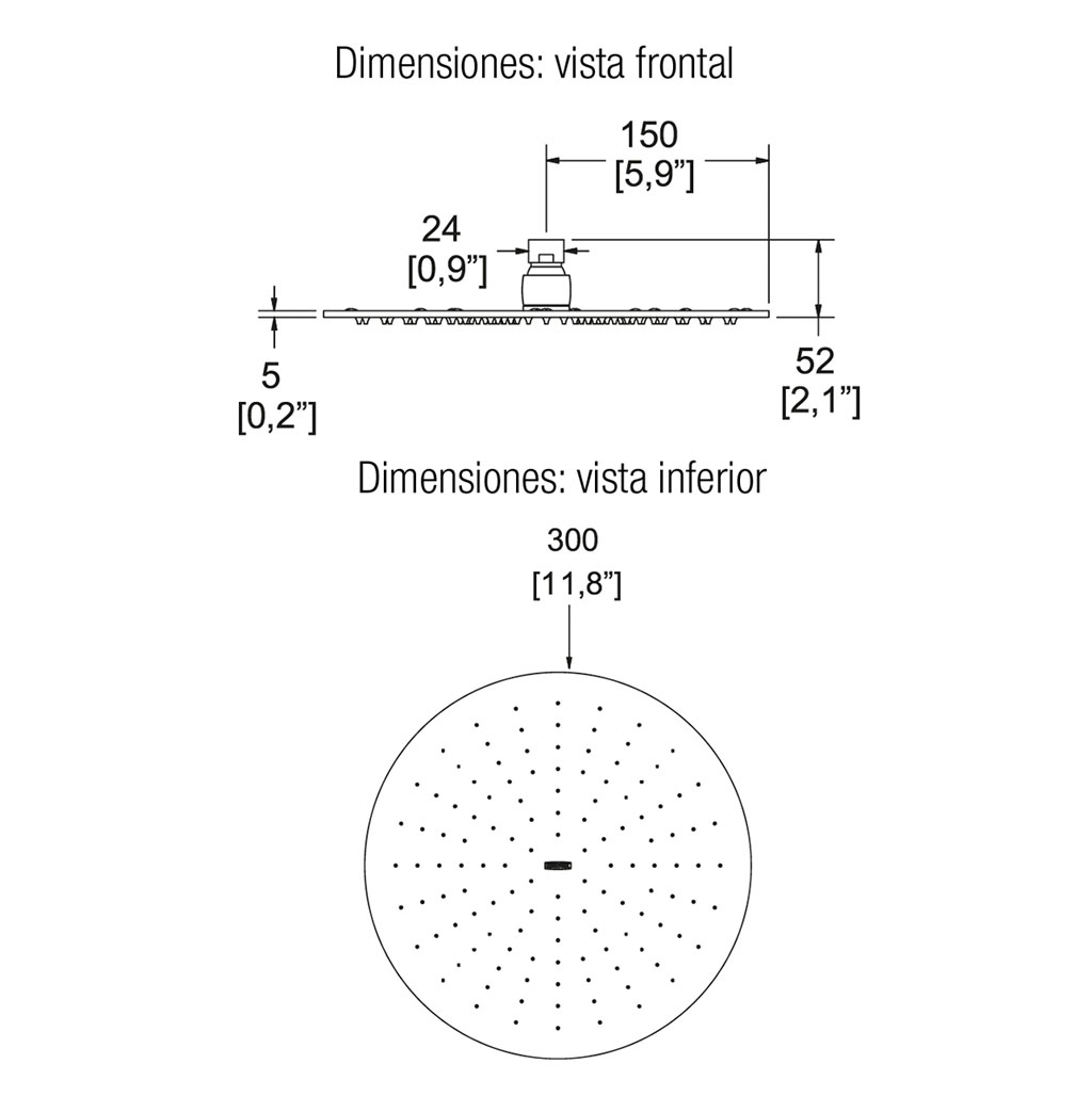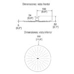 Modelo premium de gran tamaño, con plato circular ultra‑plano de 12″ (≈30 cm), ideal para duchas de lujo. Disponible en acabado cromado, se basa presumiblemente en los estándares Helvex de anticalcáreo y rango de presión entre 1–6 kg/cm². Aporta una experiencia de ducha tipo lluvia muy envolvente.