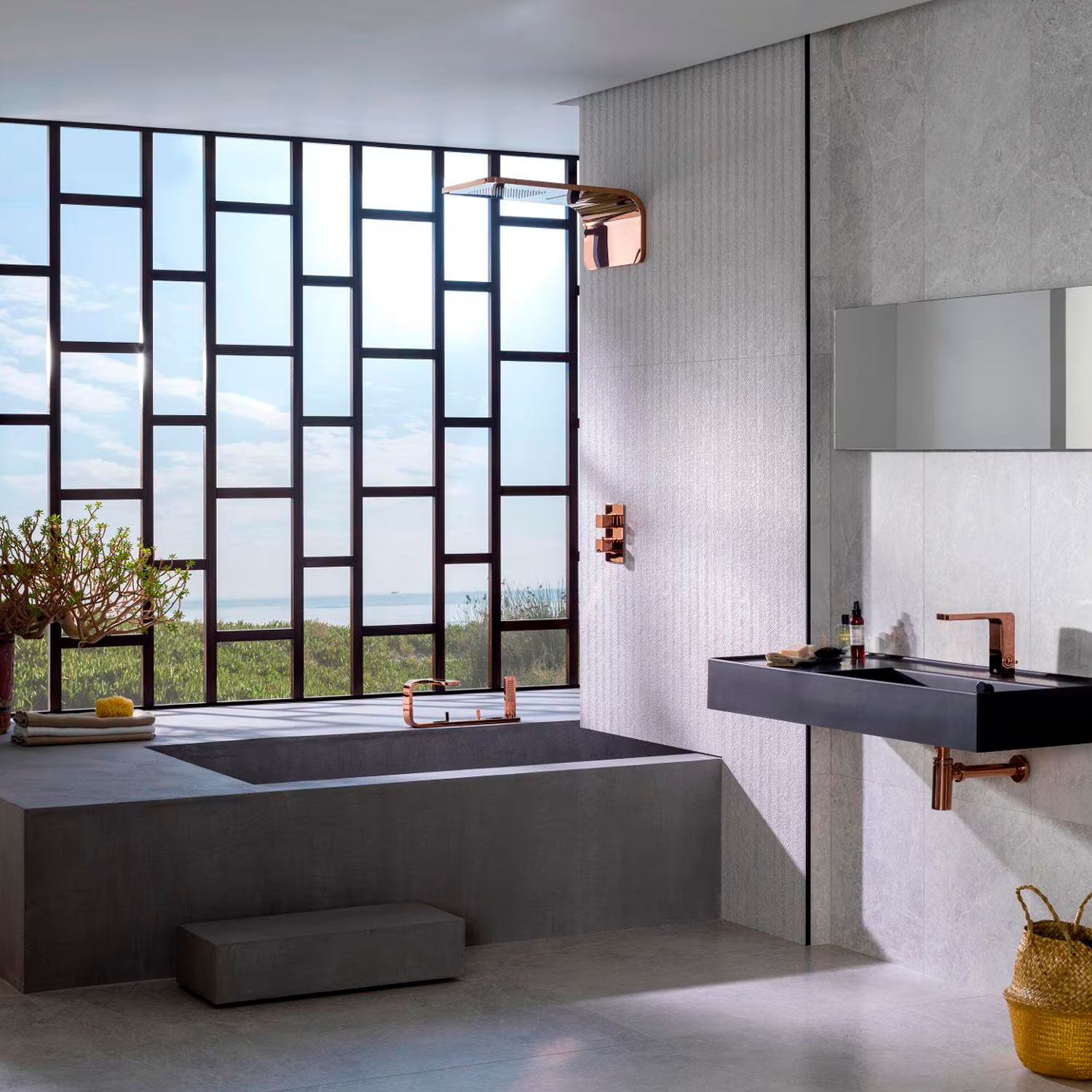 Este rociador combina las modalidades de lluvia y cascada bajo el lenguaje formal de la colección Lounge: líneas puras y volumetría sutil. Integrado al techo, proporciona una experiencia de ducha tipo spa con belleza estética integrada al diseño del espacio.