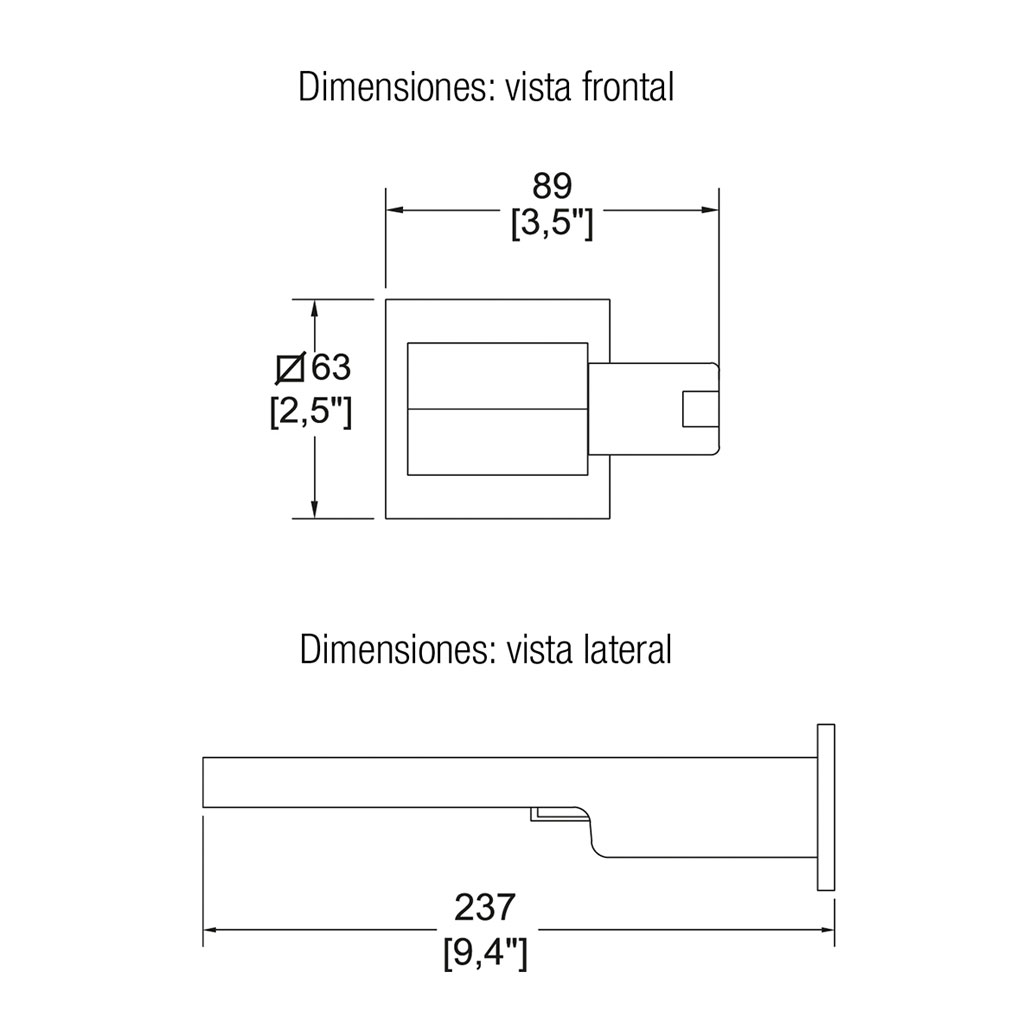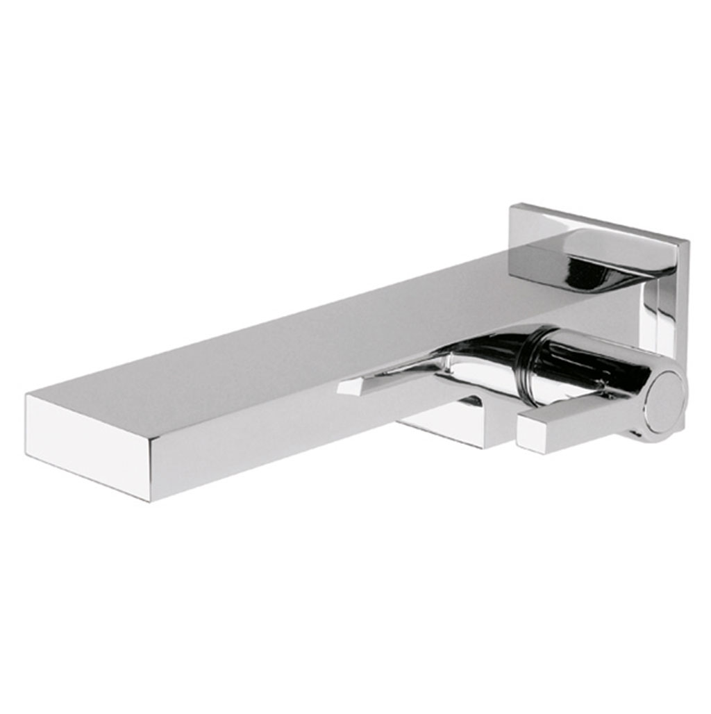 Salida mural para tina de línea Vértika, diseño integrado para empotrar con grifería baja.