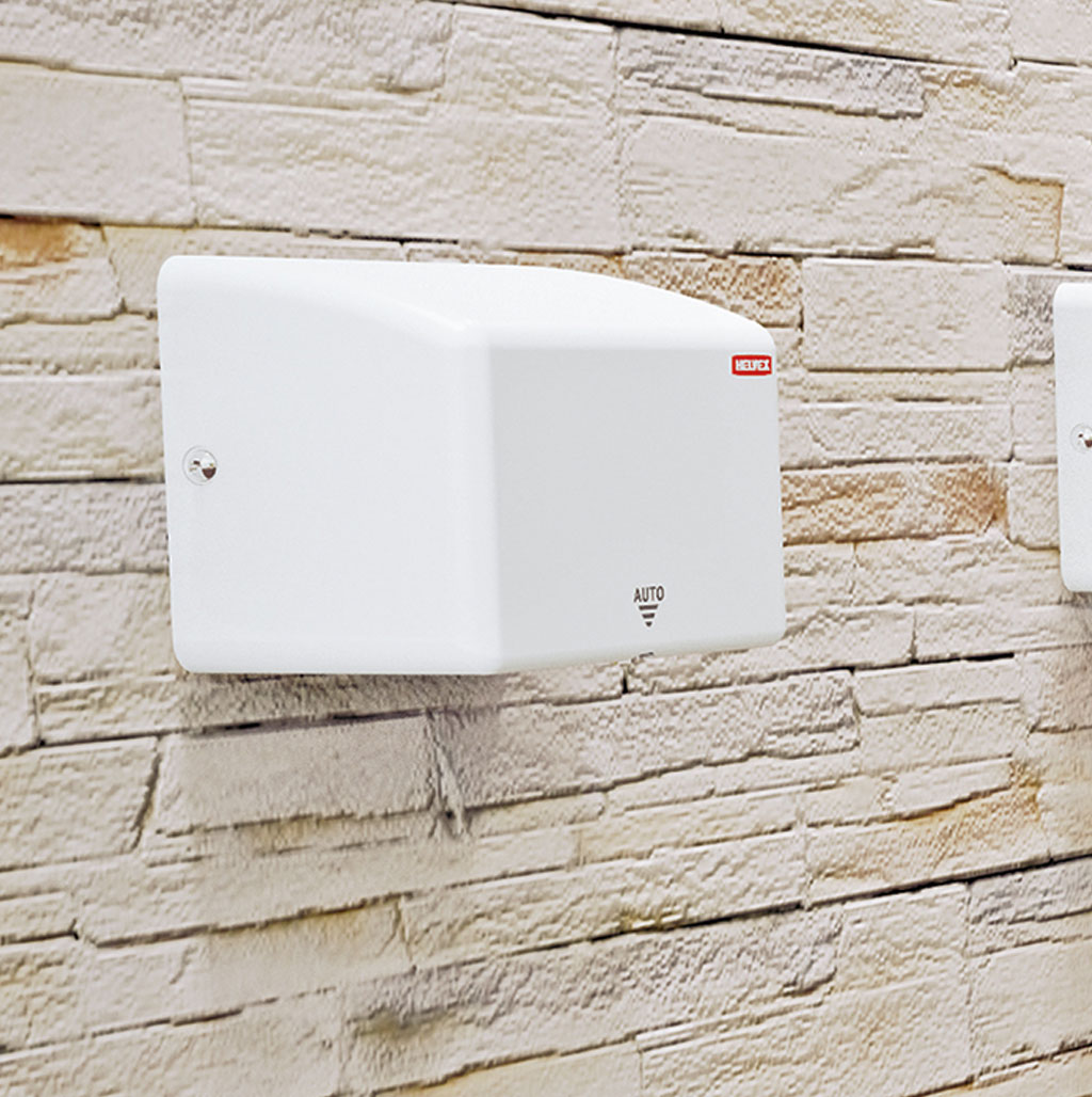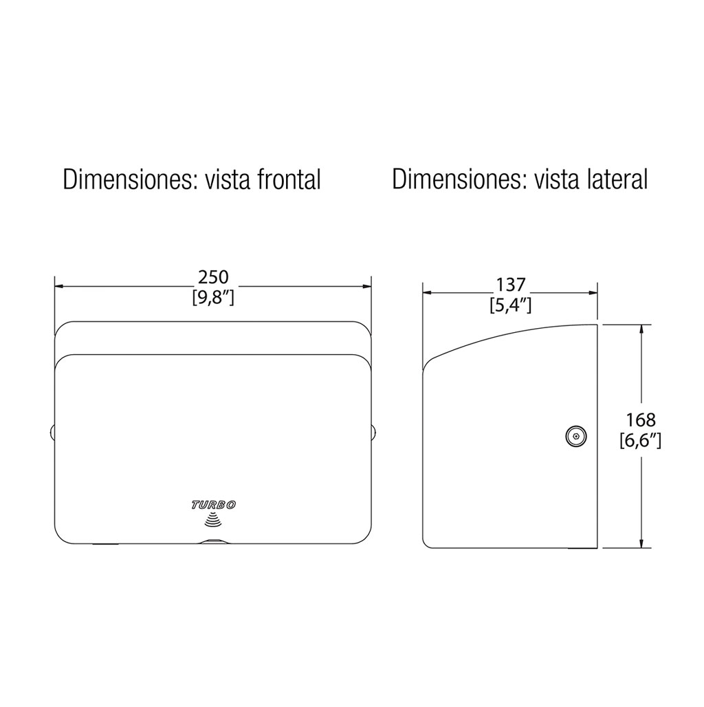 Secador de manos turbo blanco con sensor infrarrojo, tiempo de secado < 15 s.