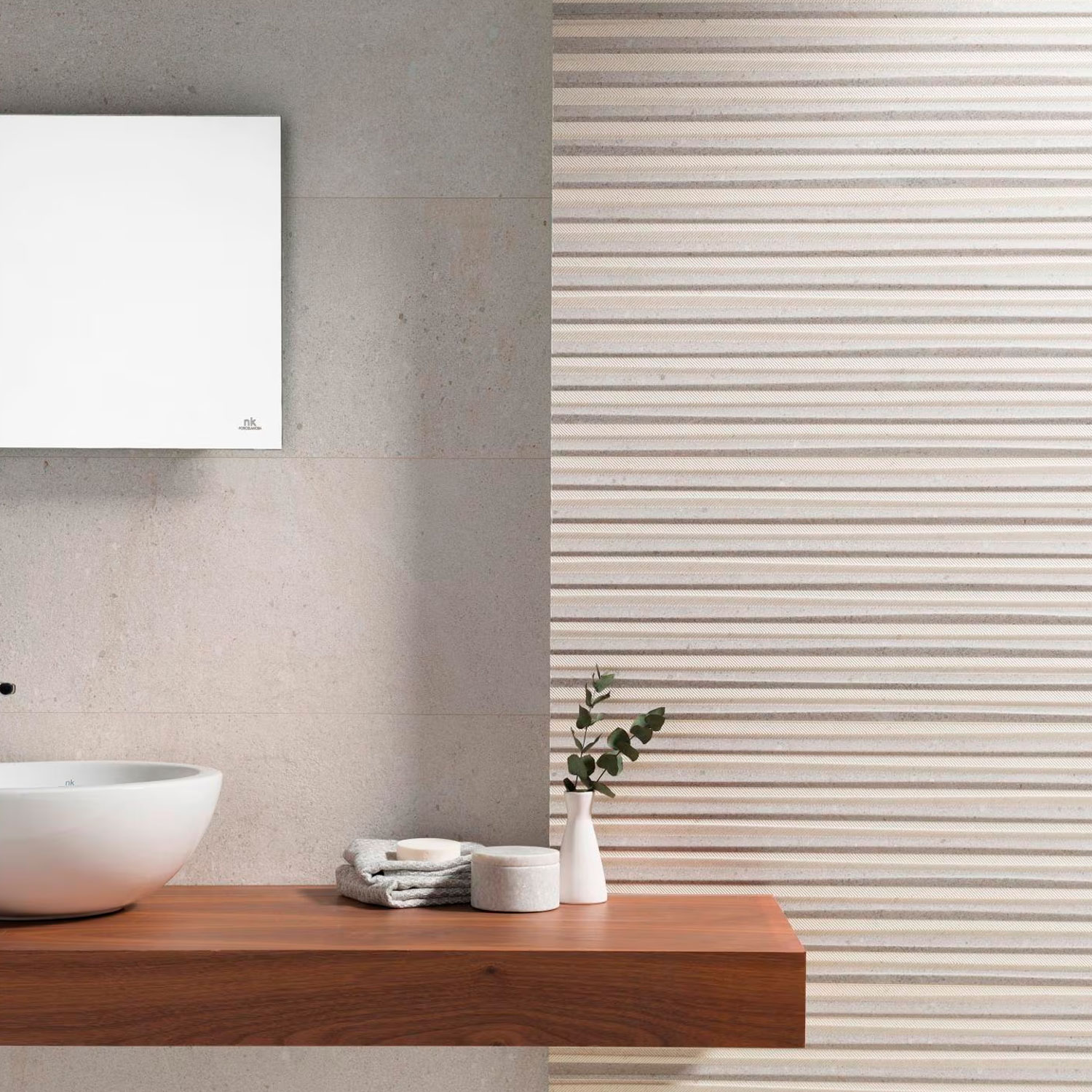 La serie con patrón espiga tiene un diseño que evoca construcciones clásicas pero adaptada a interiores modernos. Con color neutro y textura sutil, este revestimiento genera movimiento visual en muros, empleándose como muro focal o en zonas donde se quiera destacar el relieve sin saturar el ambiente.