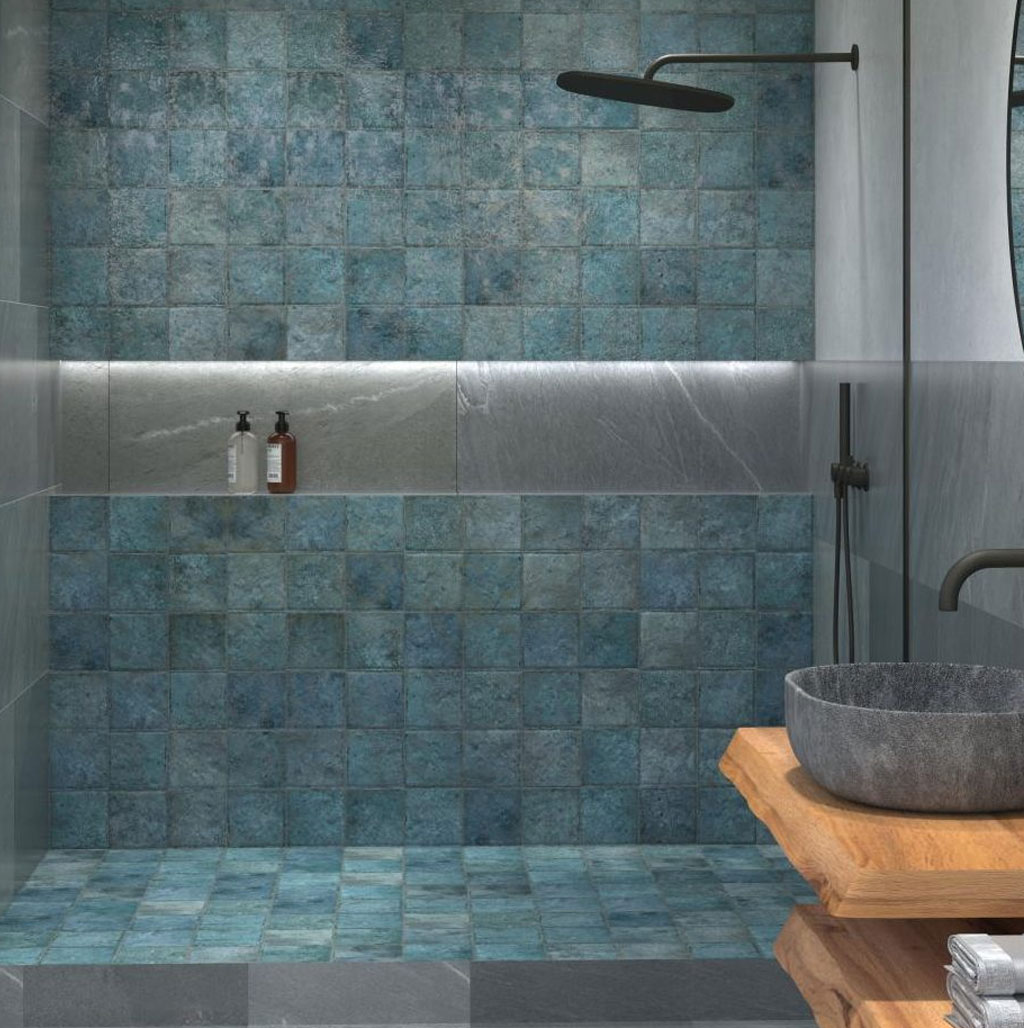 Azulejo porcelánico 14,7×14,7 cm turquesa con acabado mate antideslizante clase 3.