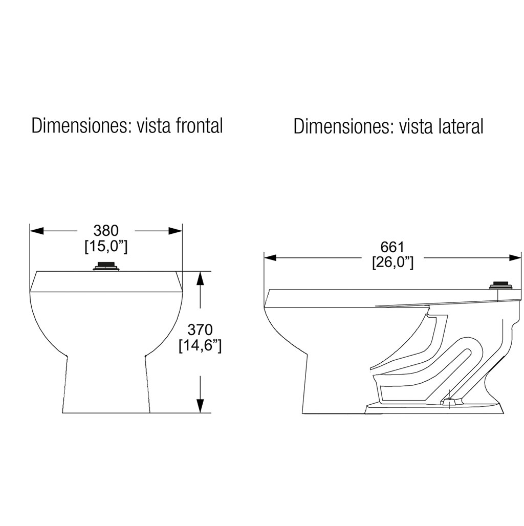 Diseñada para uso con fluxómetro (valvula de descarga) de 3.5, 4.8 o 6 L por descarga. Es sanitaria eficiente, ergonómica y sin asiento.