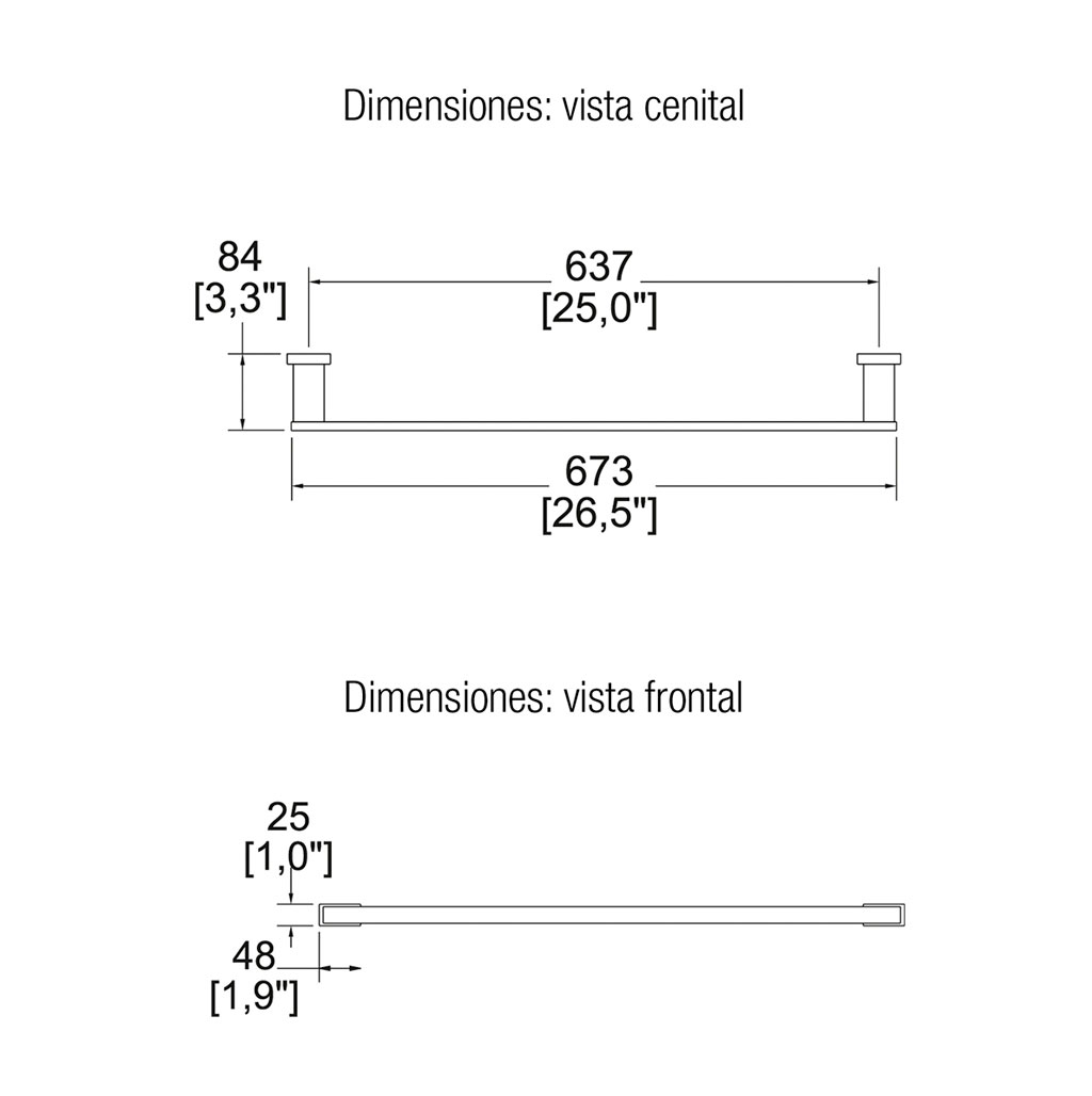 Toallero de barra Helvex Vertika, de latón con acabado cromado, ideal para mantener las toallas organizadas con un toque moderno y funcional.