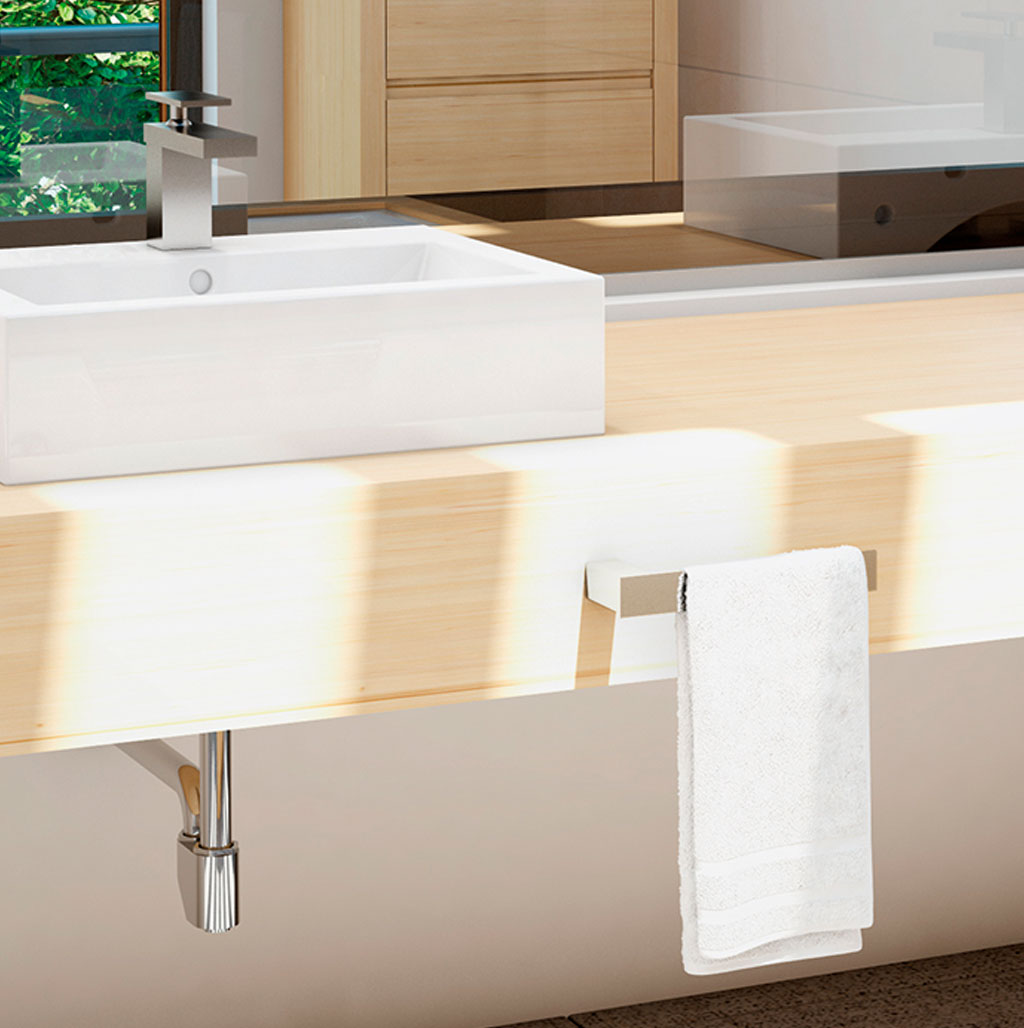 Toallero sencillo Helvex de la línea Máxima, ideal para espacios reducidos, con diseño funcional y materiales duraderos que combinan con baños actuales.