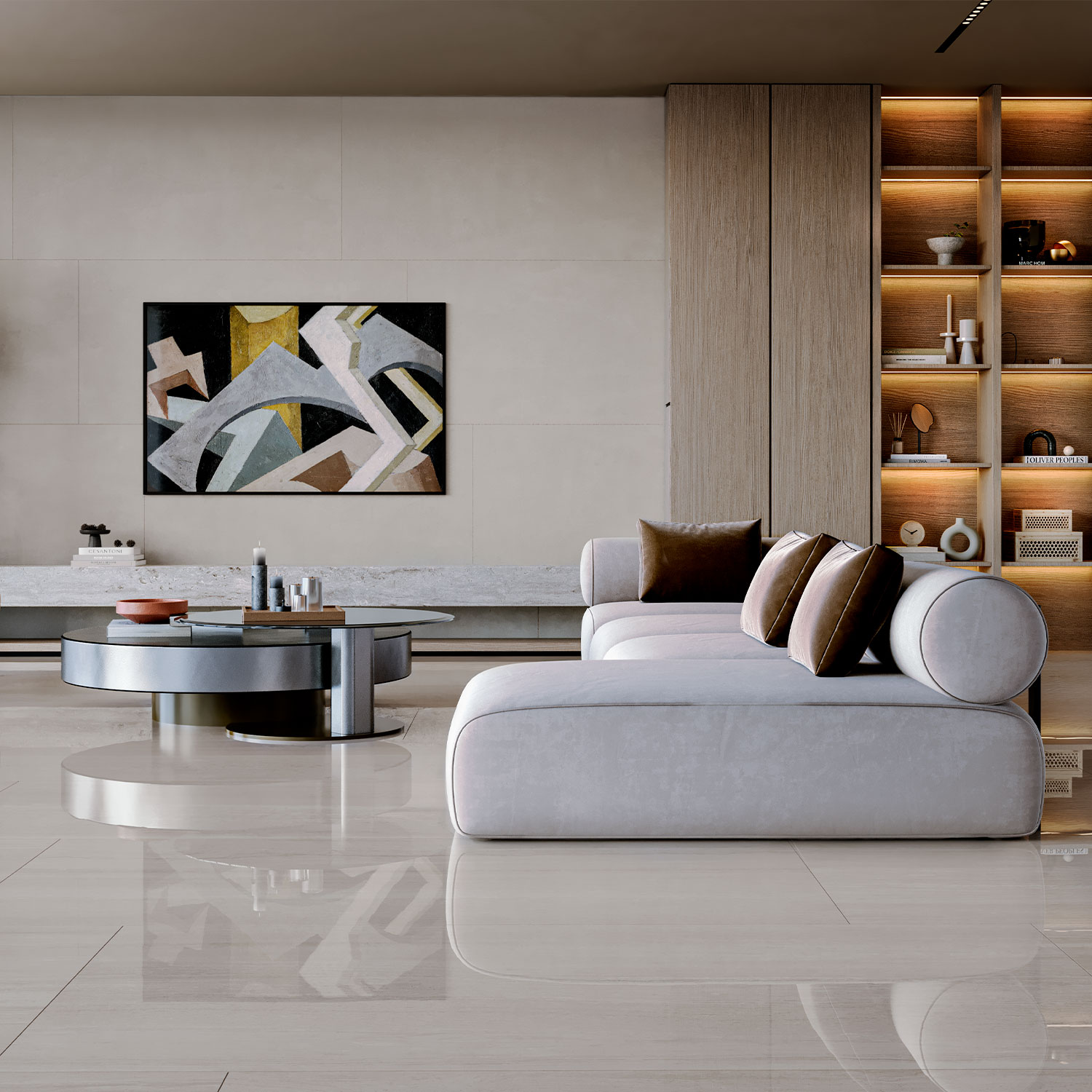 Valenciano es un porcelanato pulido brillante en formato 80 x 160 cm que destaca por su estética refinada y luminosidad natural.