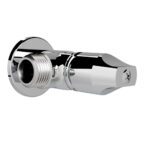 Se trata de una llave angular en latón con acabado cromado, que permite controlar el flujo mediante una válvula de compresión. Cuenta con entrada interna roscada ½″‑14 NPT y salida externa roscada ½″‑14 NPSM