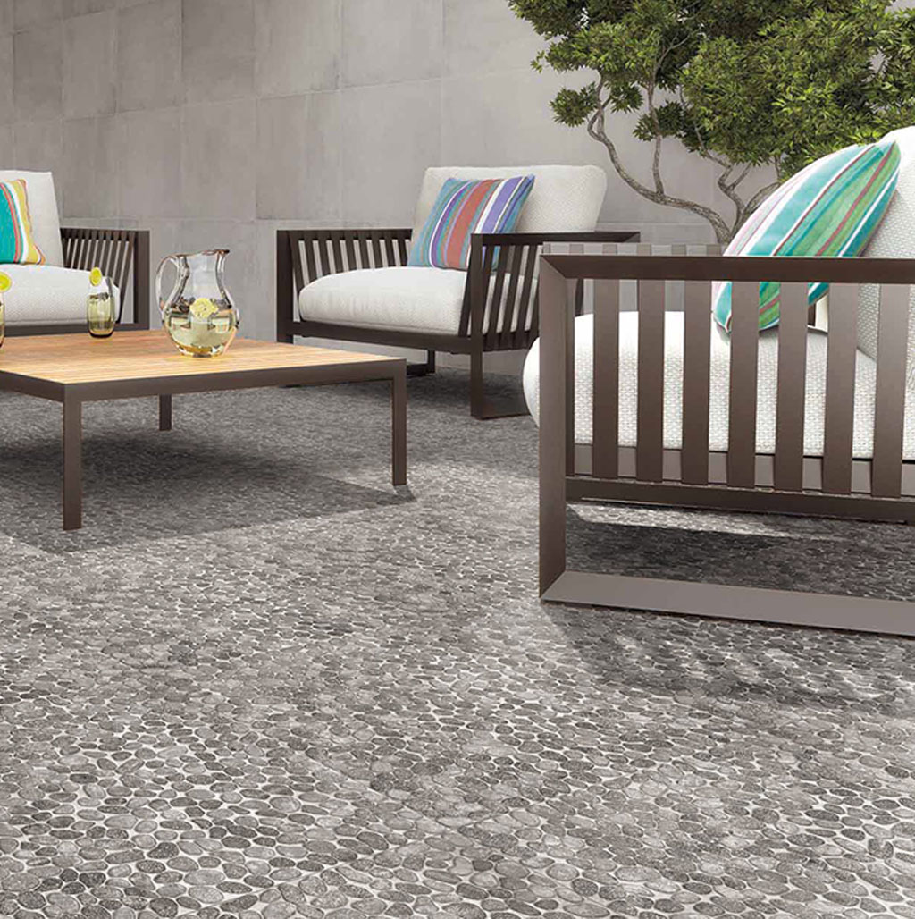 Cerámico 55 × 55 cm piedra negra mate, elegancia sobria.